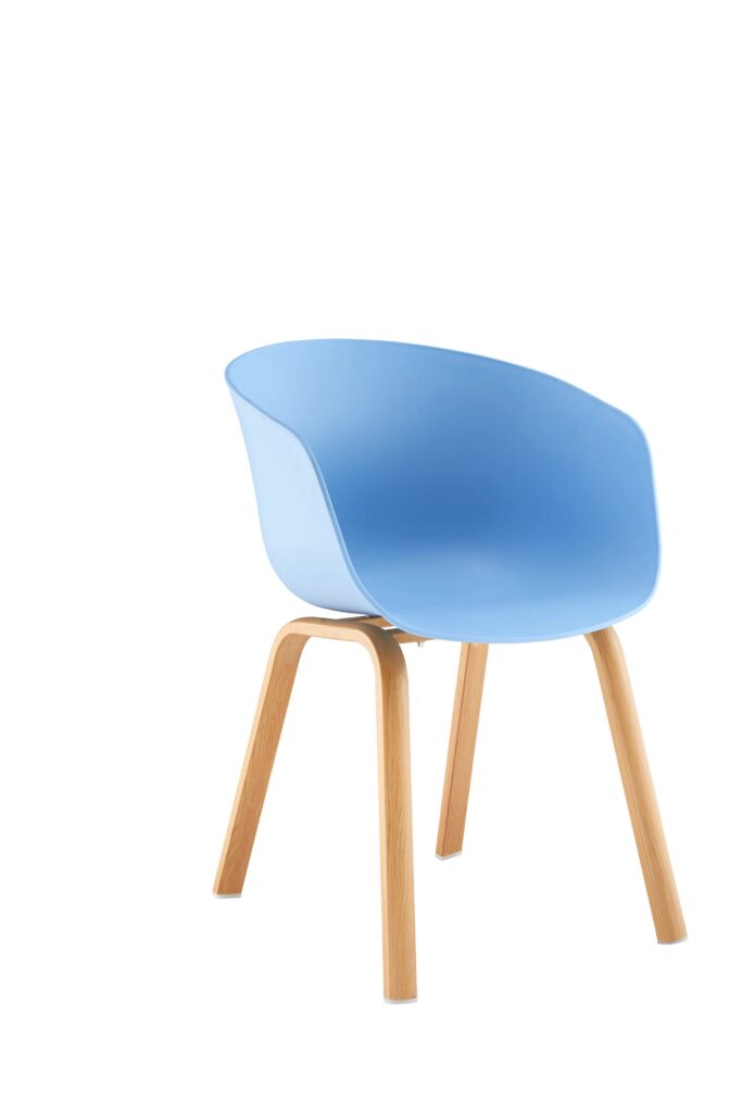 Nordic Modern Light Blue Plastic Dining Chair with Beech Wood Legs – Stylish for Kitchen, Café & Home Use-910B